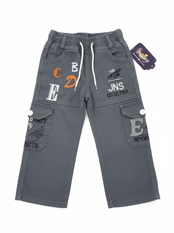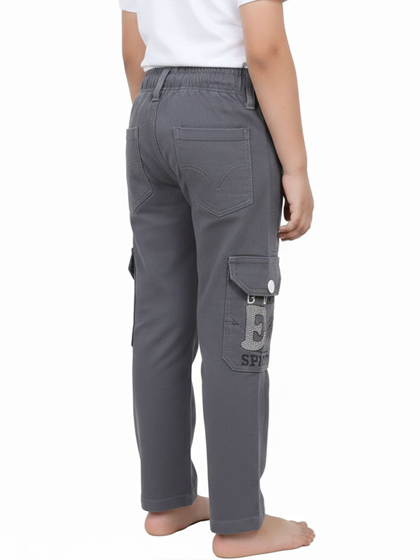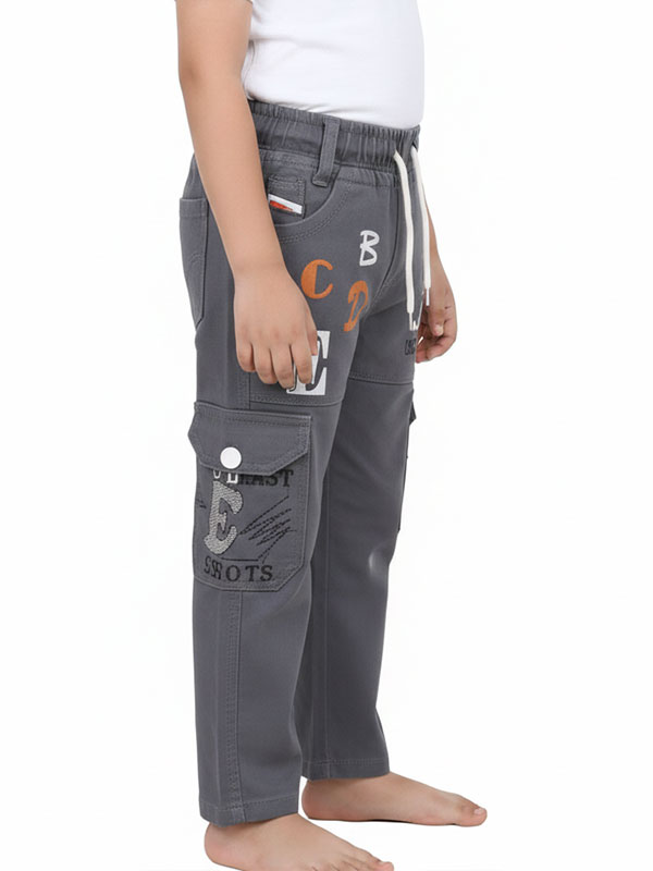 Boys’ Charcoal Grey Multi-Graphic Cargo Pants – Urban Utility Joggers with Elastic Drawstring Waist