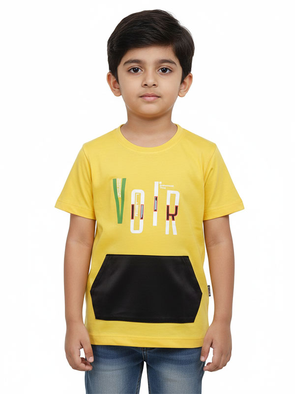 Brighten up your child’s wardrobe with our Boys’ Vibrant Yellow Graphic T-Shirt. Combining high-energy color with an edgy urban aesthetic, this tee is designed for kids who want to stand out. Made from soft, breathable cotton, it’s the perfect blend of all-day comfort and modern streetwear style.
